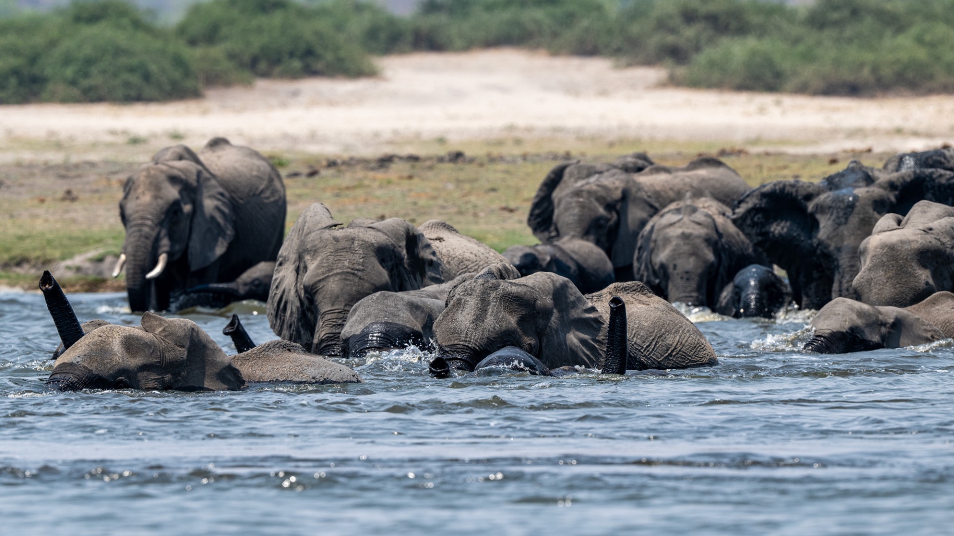 The Chobe region is world-famous for its astonishing elephant population. An estimated tens of thousands of elephants migrate through the area, particularly during the dry season when the river becomes an oasis of survival. Watching these giants wade, swim, and play along the riverbanks is one of the most unforgettable wildlife experiences anywhere in the world.