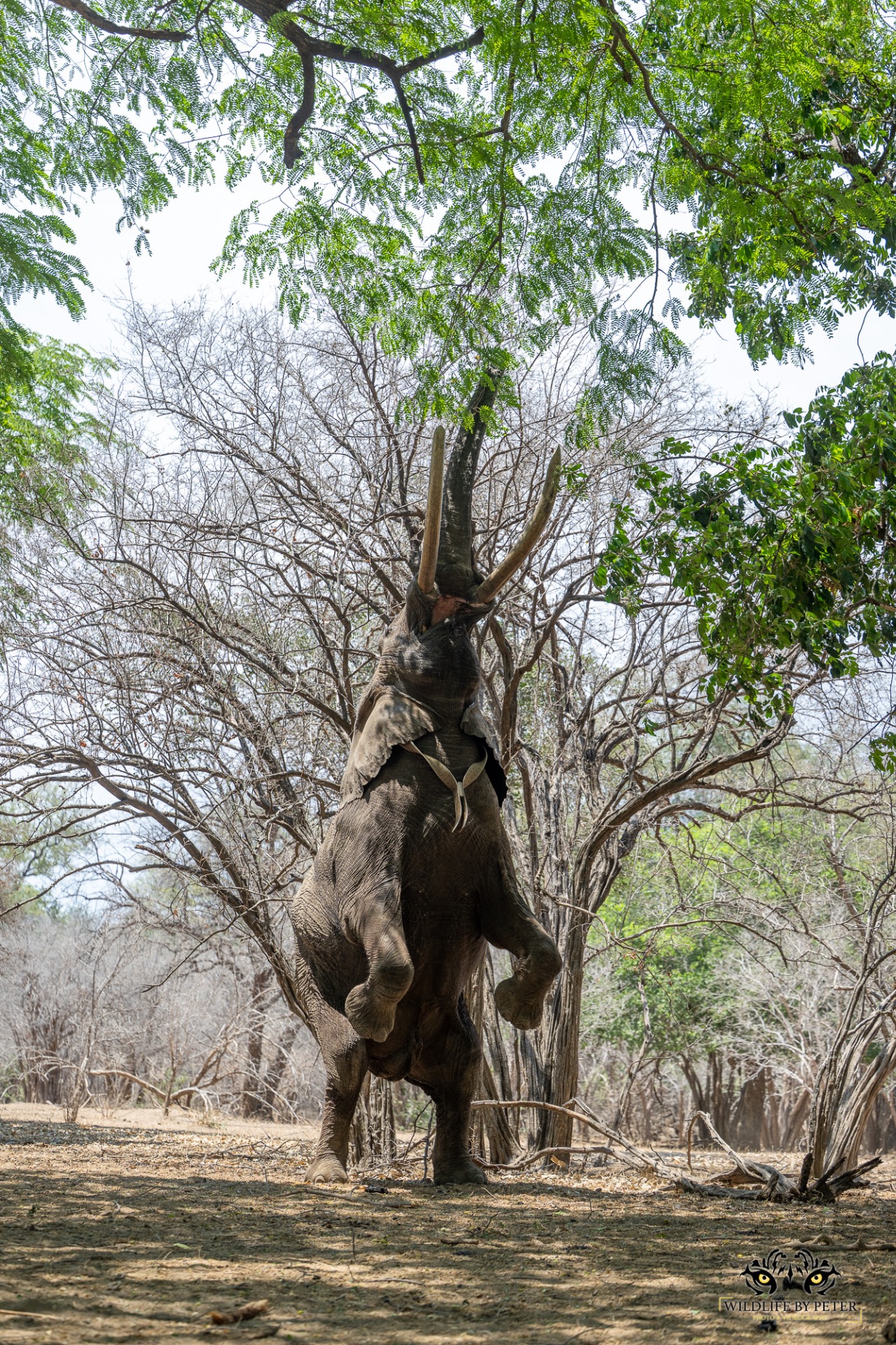 One of the most thrilling things about Mana Pools is that much of the park is explored on foot. There's an intimacy in walking at eye level with elephants that's hard to describe. I watched as a tall bull named Boswell stretched upright on his hind legs to reach pods from a tree—an iconic Mana Pools sight and an incredible photographic challenge. Capturing the power and delicacy in the same frame felt like a gift.